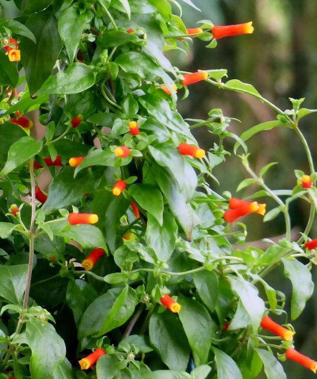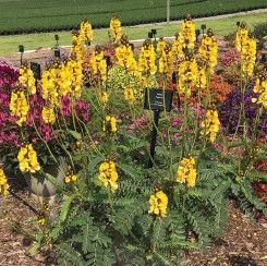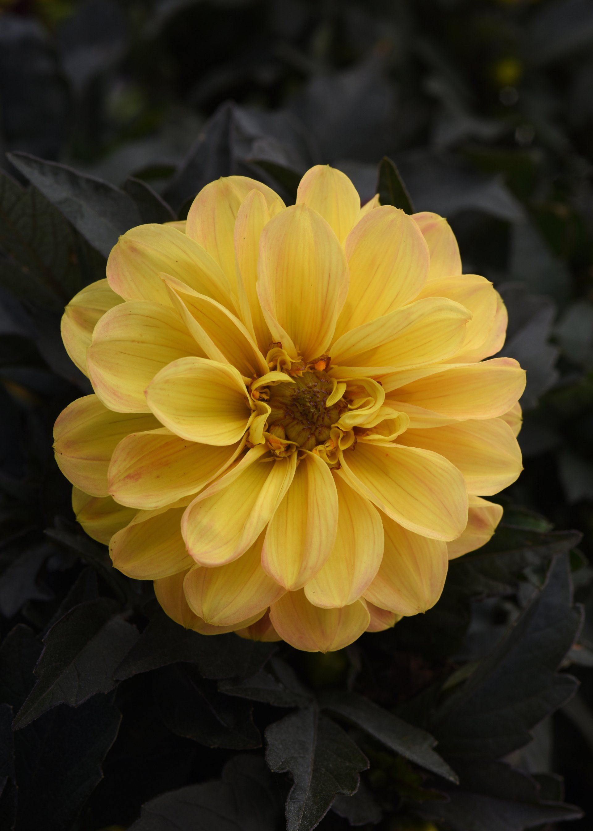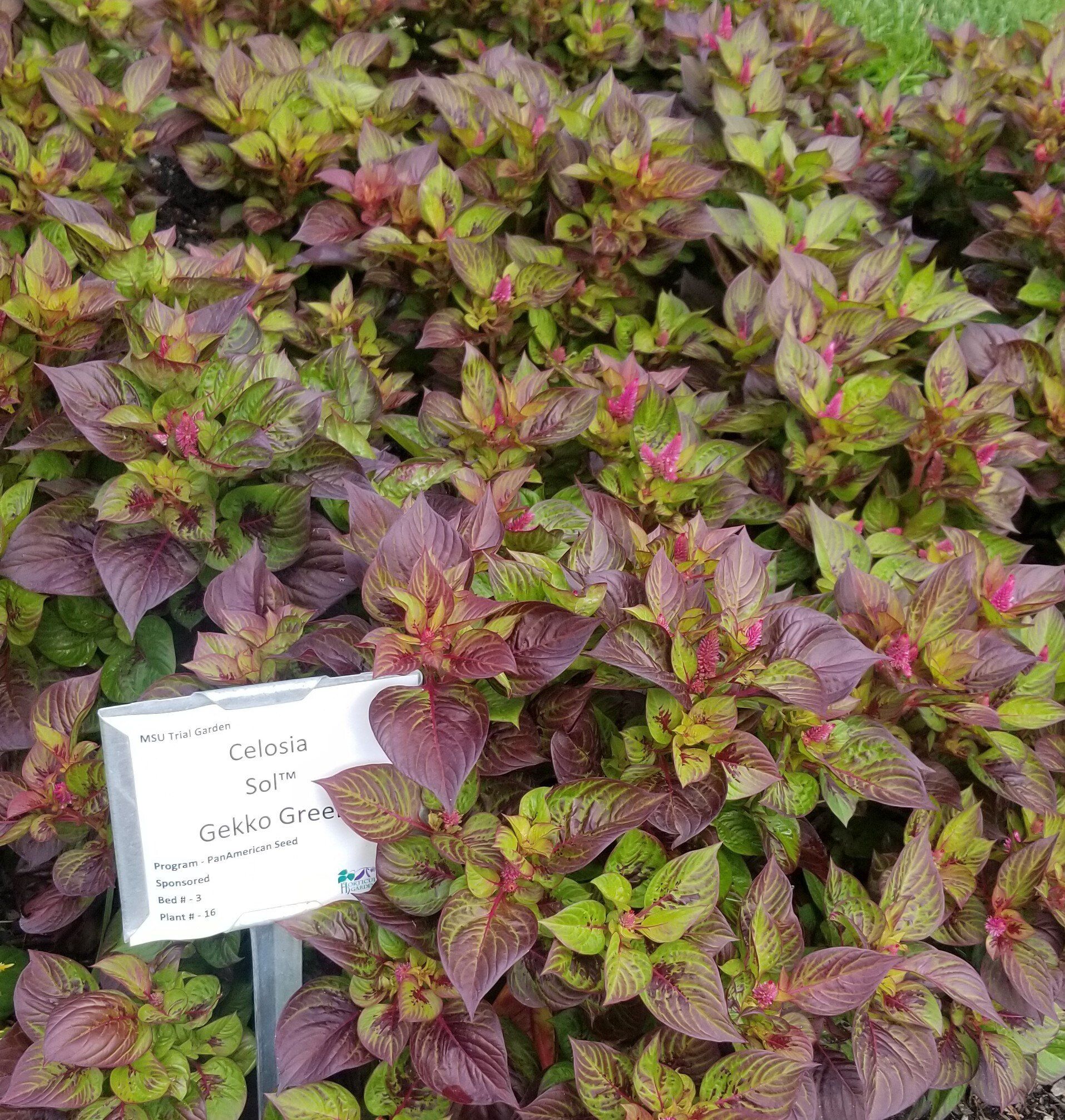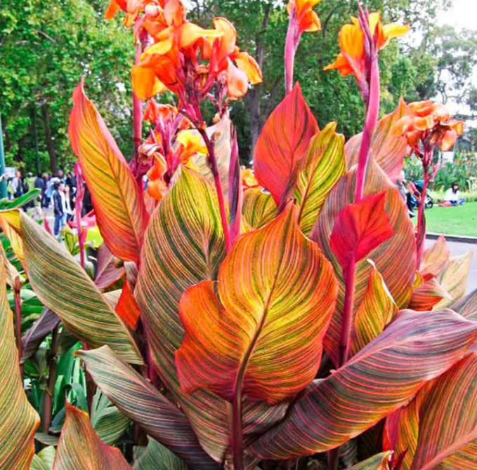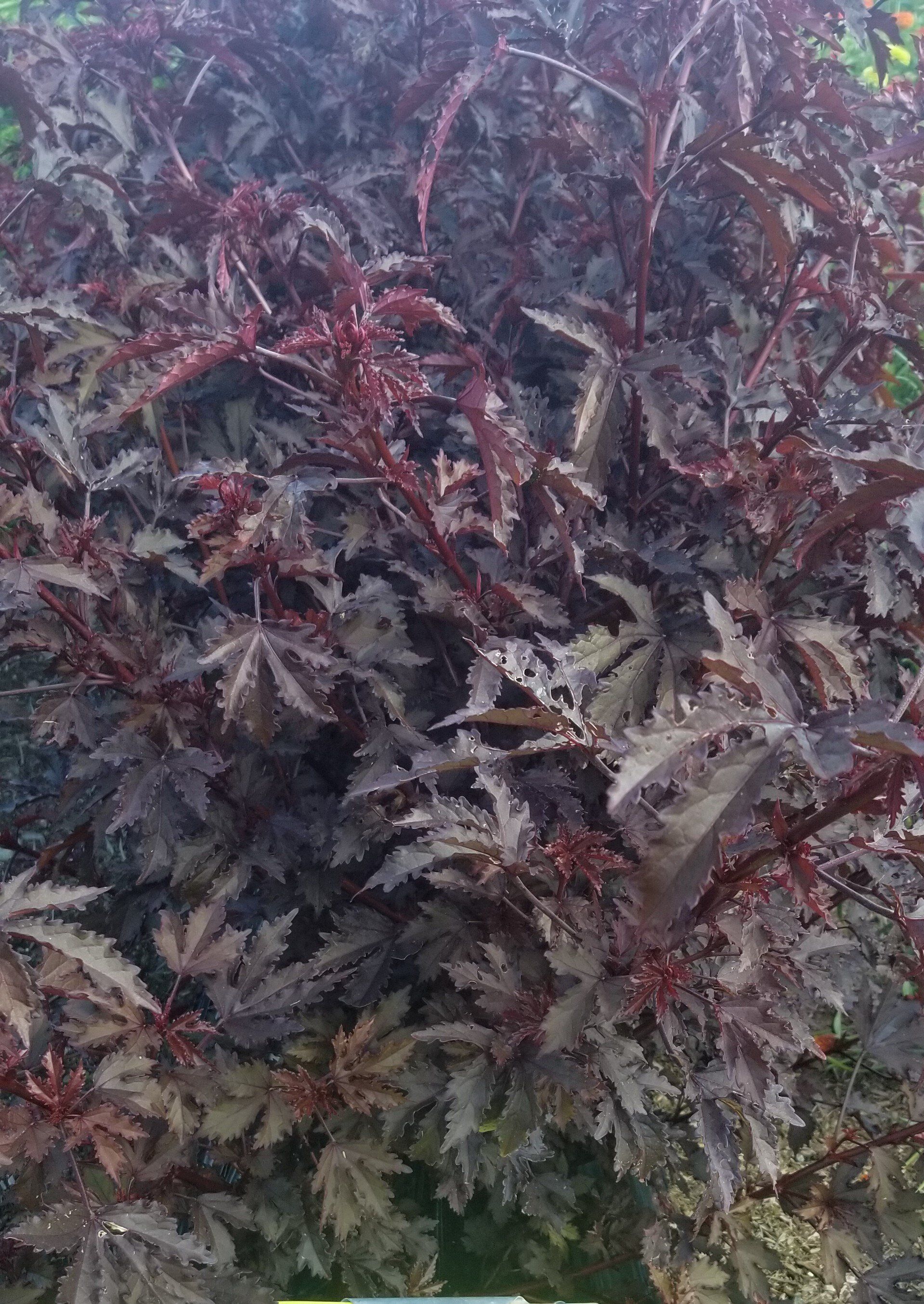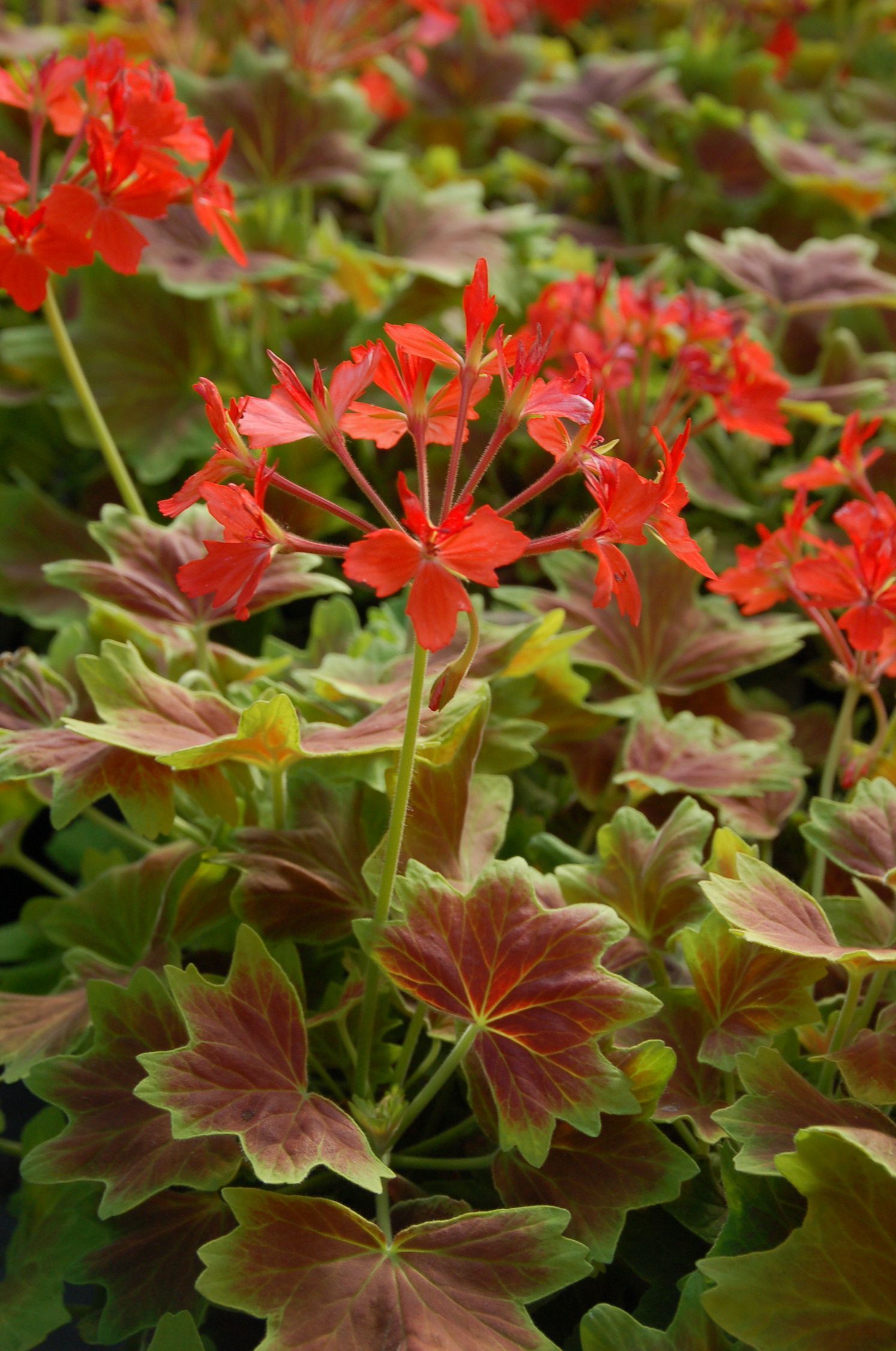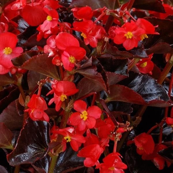 - Scarlet-red blooms pair well atop deep-bronze foliage