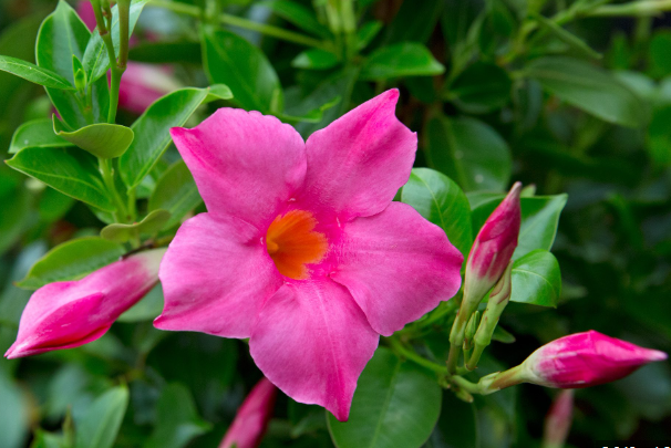 - Naturally compact, limited vining- a well-behaved Mandevilla!