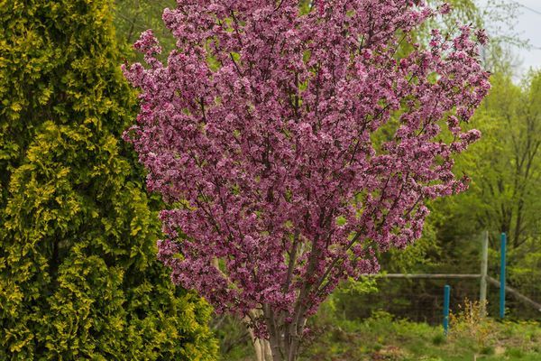- This naturally weeping crab engulfs itself in fragrant pink flowers.