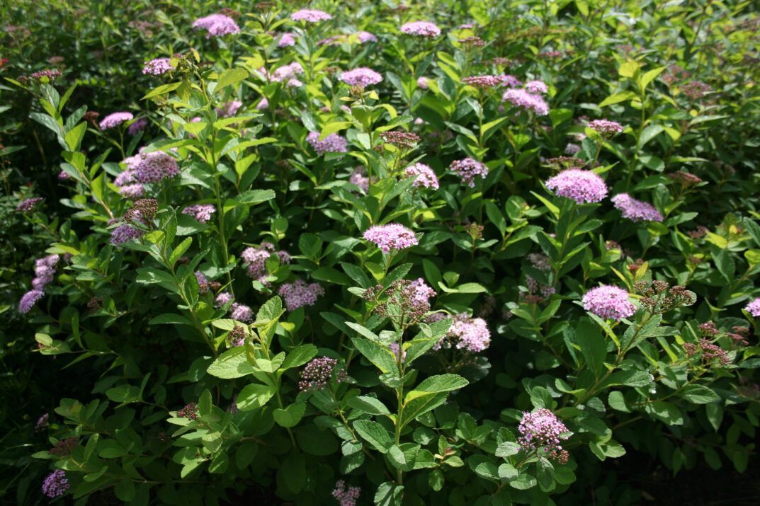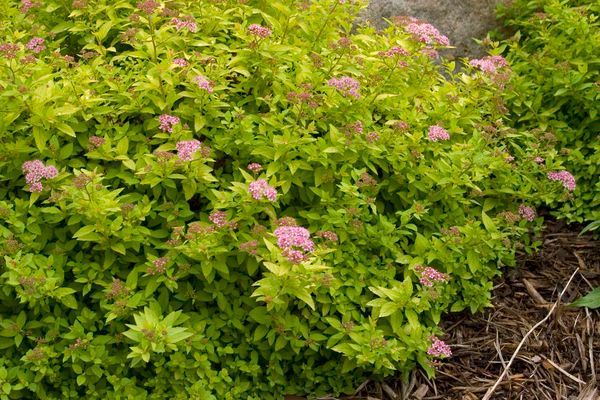 - Bright pink flowers bloom in midsummer, nice yellow fall foliage.